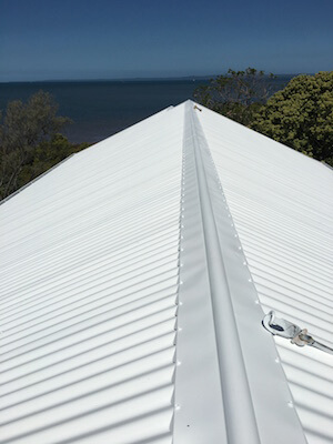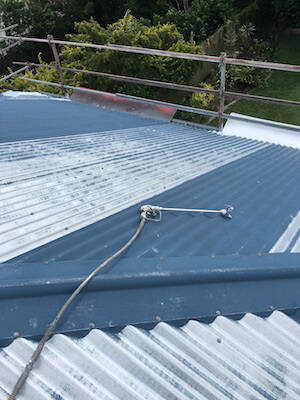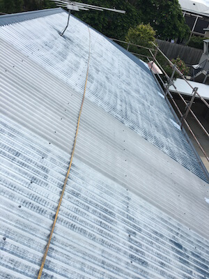 By JeffPosted on April 9, 2019Posted in News, Residential Roslyn and Robert’s faded Colourbond roof was pressure cleaned as the first part of our roof restoration processMost of the Colourbond colour has come off after the cleaners did their job. Colourbond colours are just car paint, without any maintenance your roof will fade and lose its colour. Then we applied one coat of Gi metal primer. Then two coats of Infracool Commercial White Roofing Membrane for maximum TSR (Total Solar Reflection).Safety harness was worn for safety reasons, Roof Restoration at Wellington Point Post navigation House At Brookvale Golf CourseAccute Laser at Carole Park